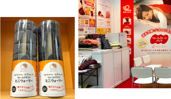店頭にて、HEARTRAY「天然鉱石繊維」製品、「ウォームストーン